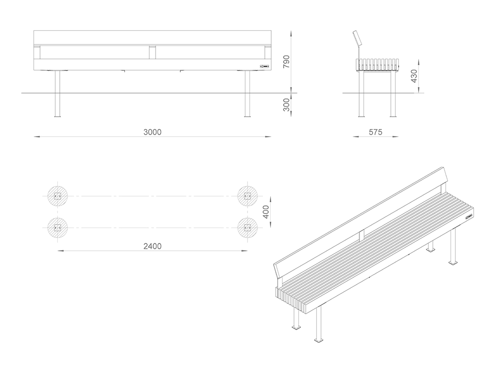 Настил/Спинка: сосна/лиственница. Покрытие: 1 слой пропитки стандартного цвета**, 2 слоя лака.