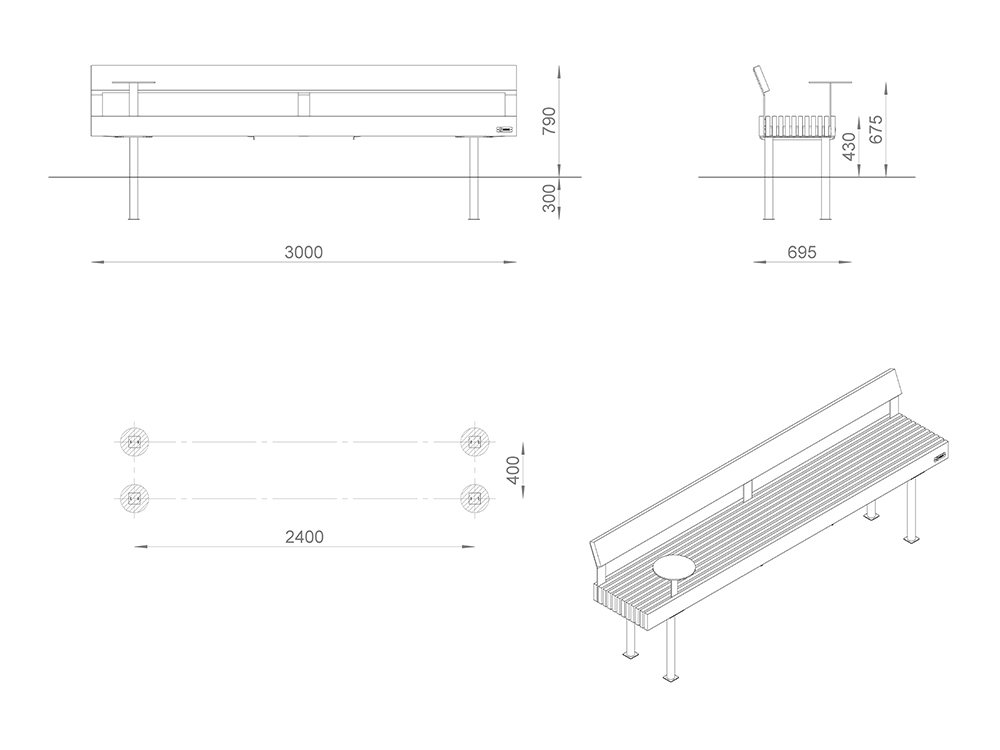 Настил/Спинка: сосна/лиственница. Покрытие: 1 слой пропитки стандартного цвета**, 2 слоя лака.