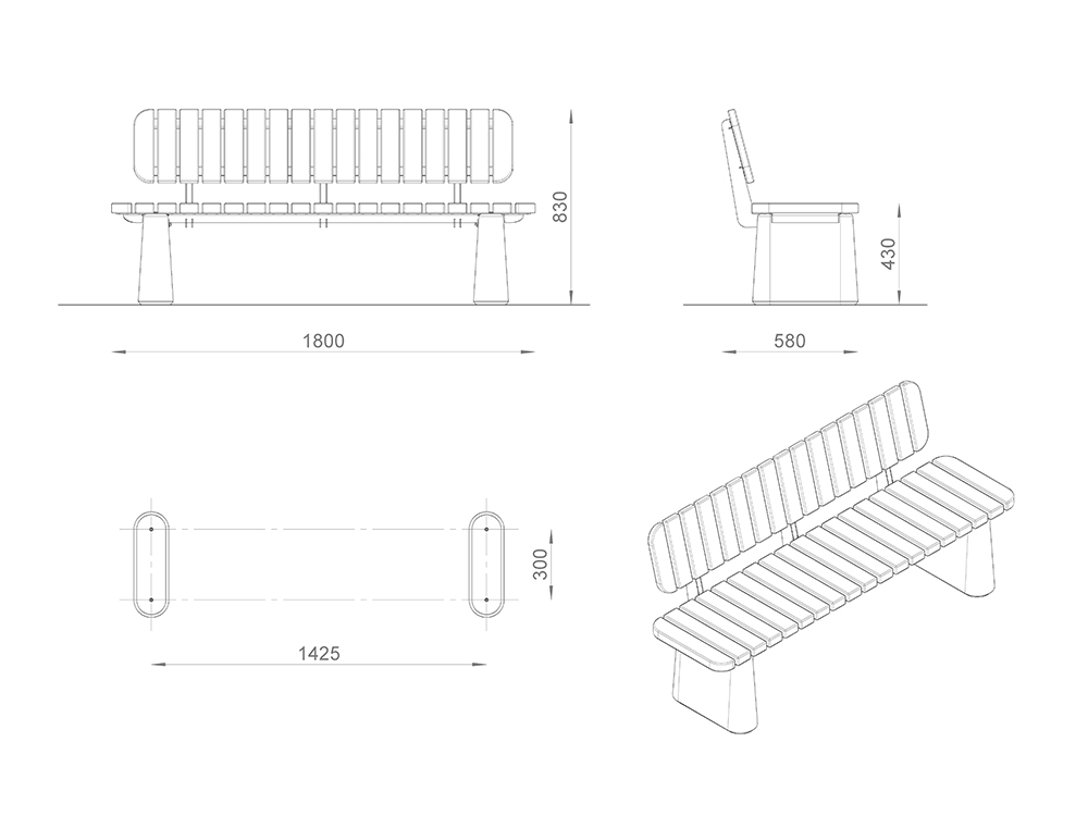 Настил/спинка: сосна / лиственница. Покрытие: 1 слой пропитки стандартного цвета**, 2 слоя лака.