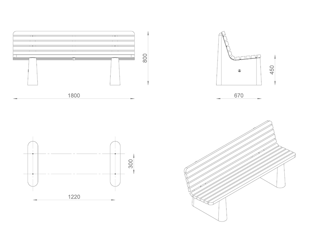 Скамейка «Неаполь» со спинкой Тип 2 L1800