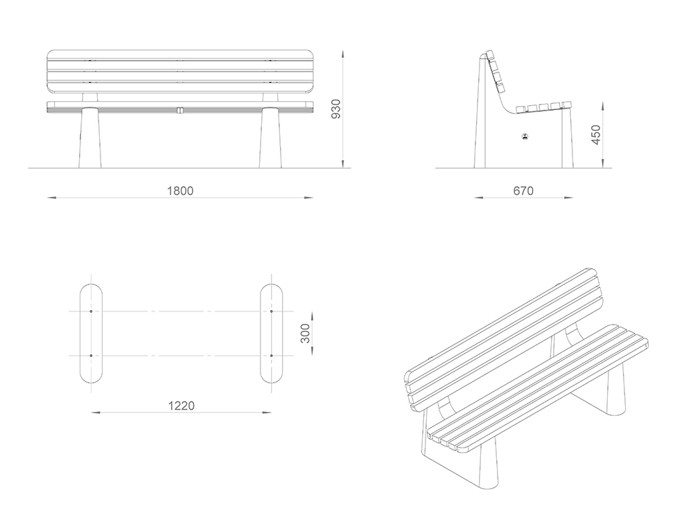 Настил/спинка: сосна / лиственница. Покрытие: 1 слой пропитки стандартного цвета**, 2 слоя лака.
