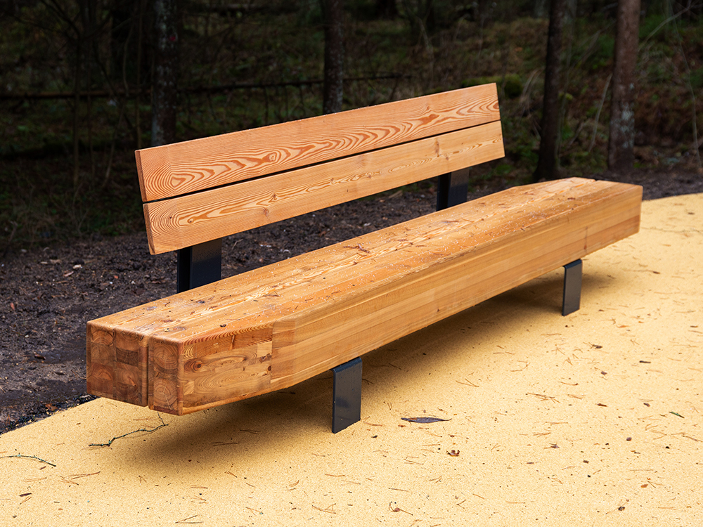 Настил/Спинка: сосна/лиственница. Покрытие: 1 слой пропитки стандартного цвета**, 2 слоя лака.