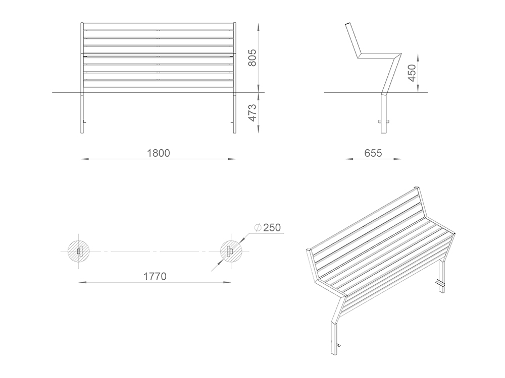 Опоры: сталь с порошковым окрашиванием стандартного цвета* в текстуре «шагрень».