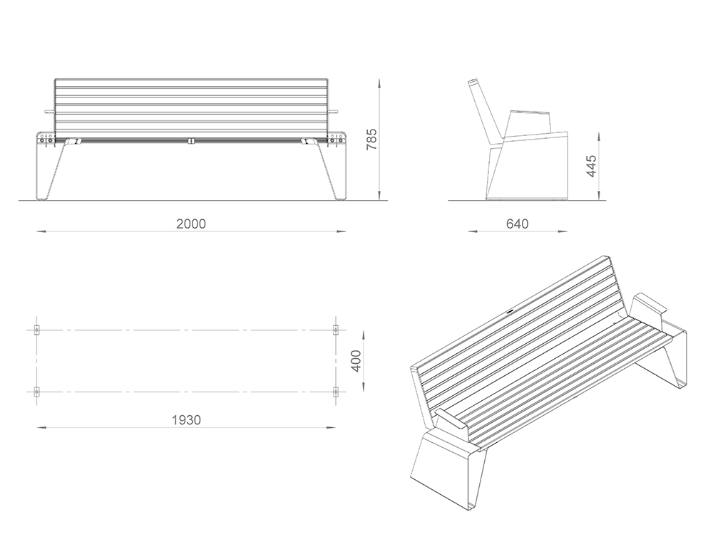 Настил/Спинка: сосна/лиственница. Покрытие: 1 слой пропитки стандартного цвета**, 2 слоя лака.