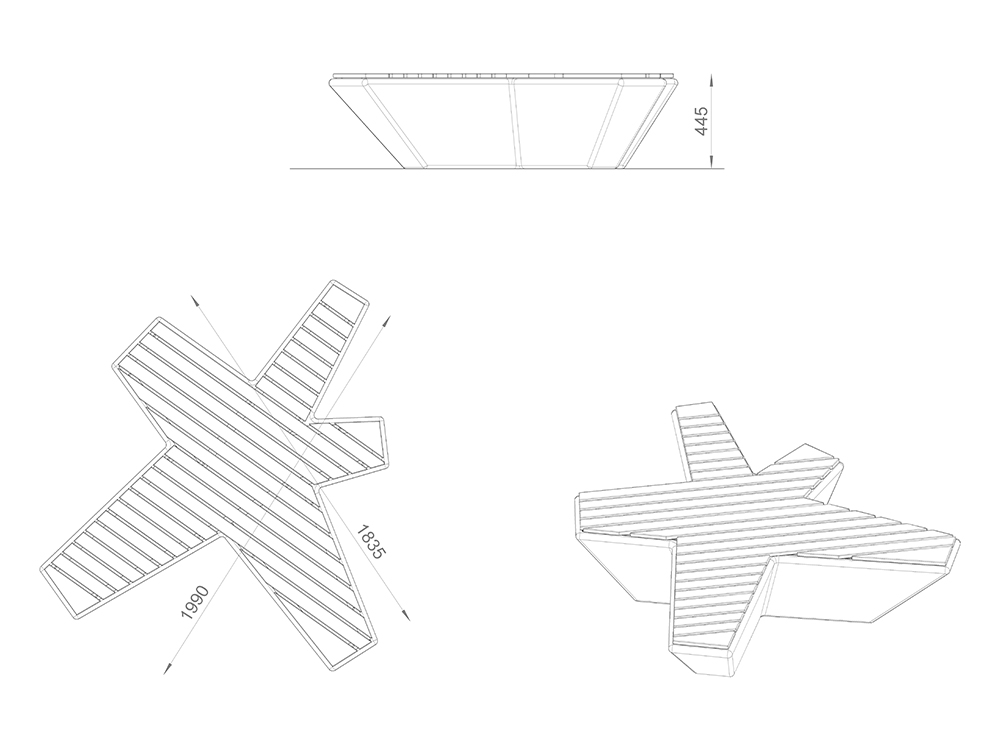 Настил: сосна/лиственница. Покрытие: 1 слой пропитки стандартного цвета*, 2 слоя лака.