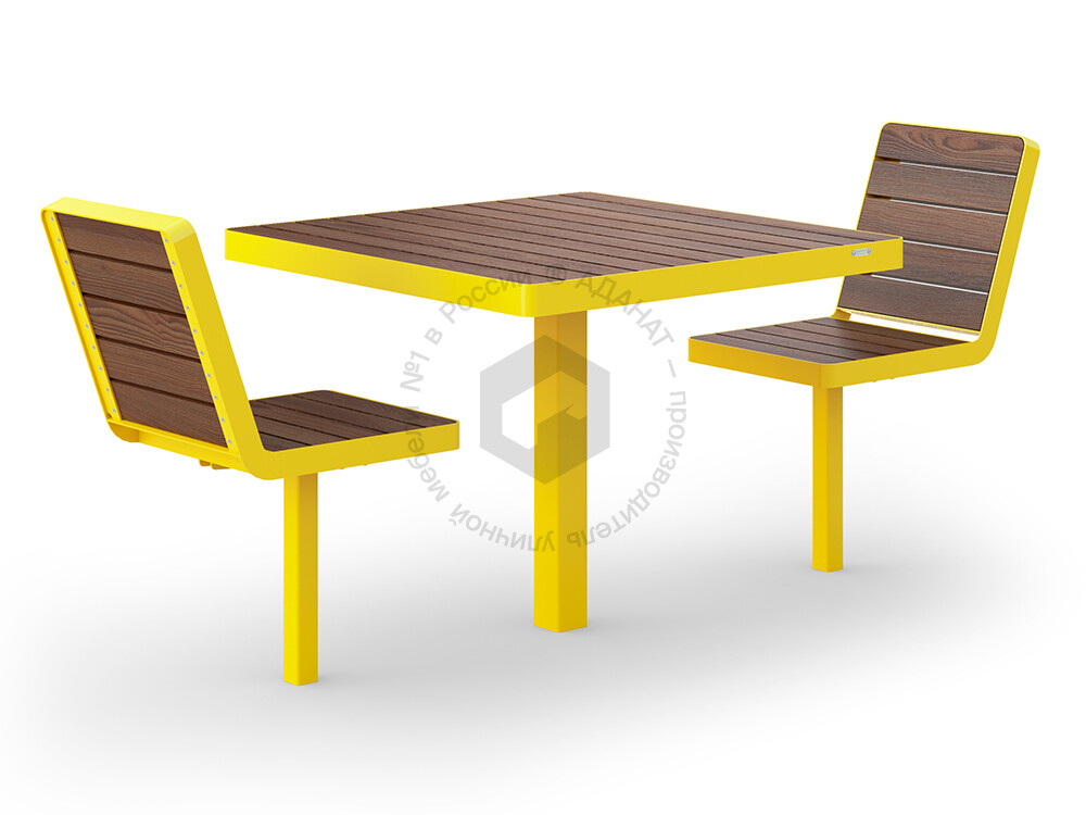 Комплект из квадратного стола и двух стильных стульев. Идеальное решение для уютных зон отдыха на свежем воздухе.