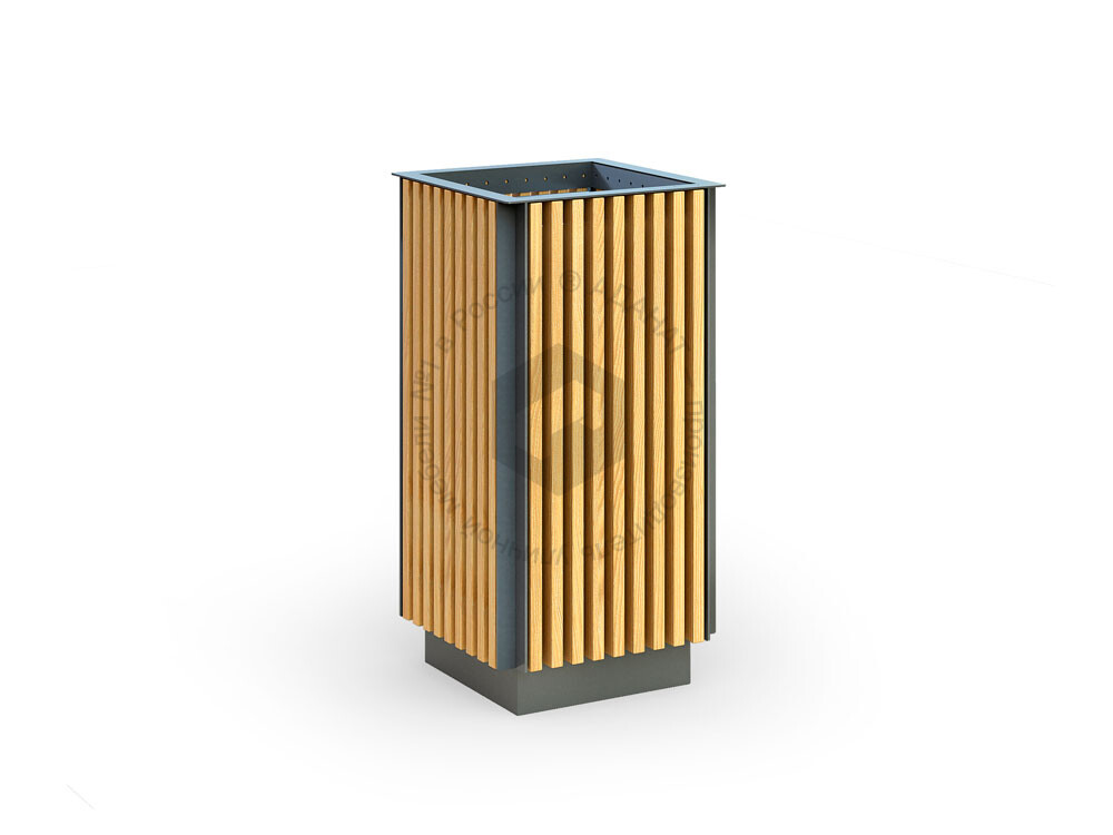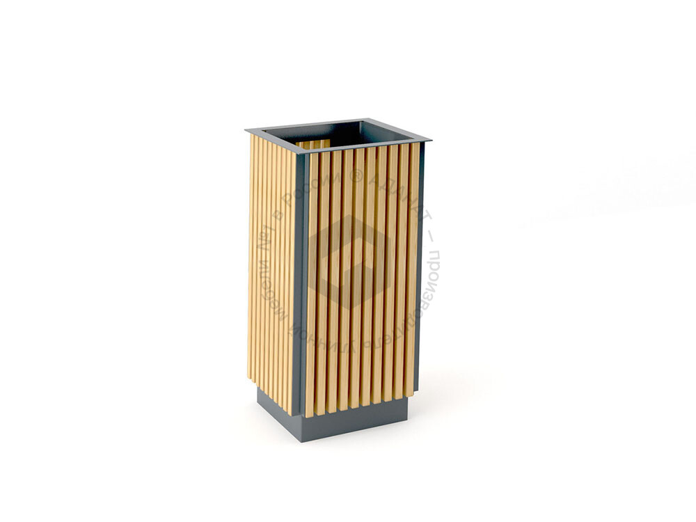 Урна «Грант» сочетает современный дизайн с практичностью. Корпус выполнен из прочного металла с защитным покрытием, устойчивым к погодным условиям и коррозии. Декоративные панели из натурального дерева придают изделию элегантный внешний вид, идеально вписывающийся в городские и парковые пространства.