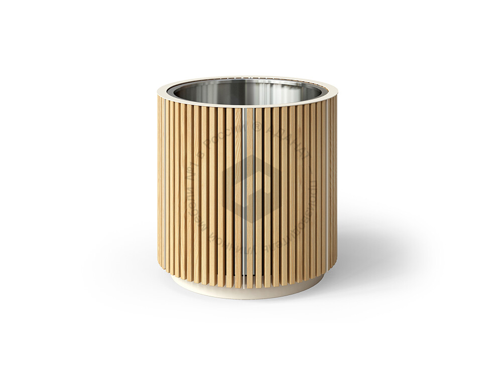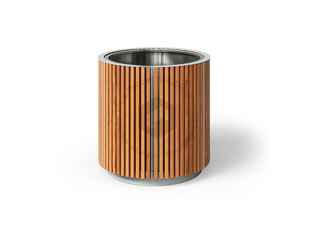 Вазон «Барселона» отличается лаконичным современным дизайном и продуманными габаритами, которые позволяют одинаково успешно использовать его как для оформления обширных открытых пространств, так и для обустройства компактных территорий. Модель выполнена из износостойких материалов — металла и дерева.